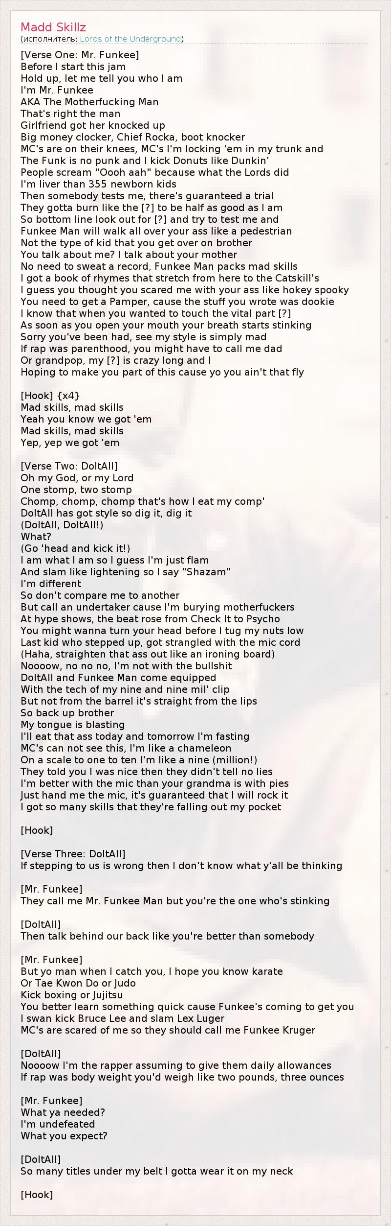 А как ты думаешь, о чем песня "Madd Skillz" ?