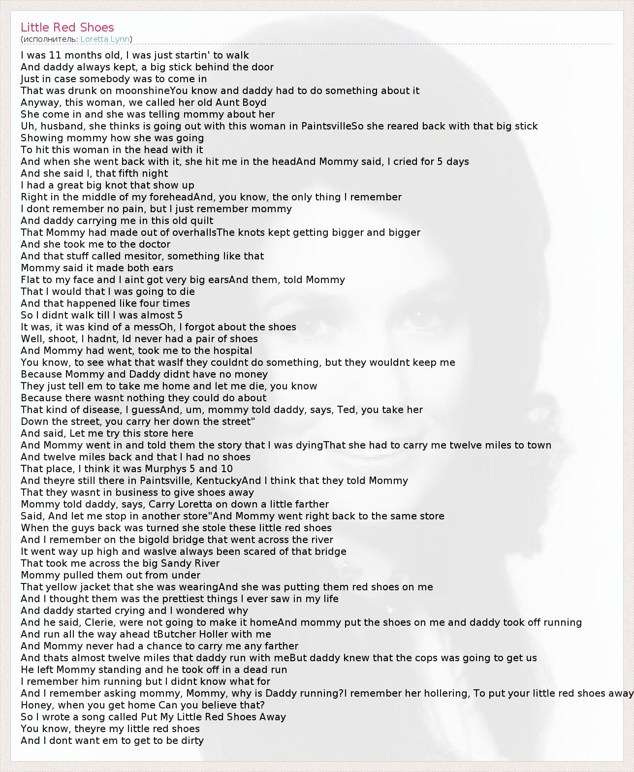 А как ты думаешь, о чем песня "Little Red Shoes" ?