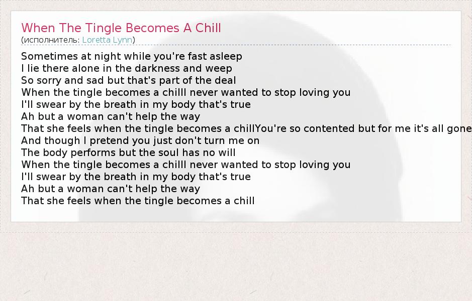ГлавнаяИсполнителиLoretta LynnWhen The Tingle Becomes A Chill