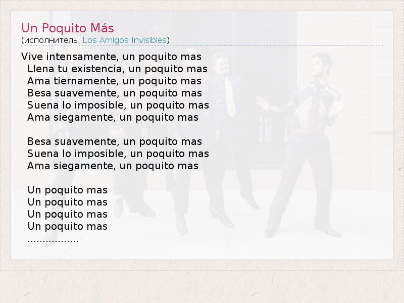 А как ты думаешь, о чем песня "Un Poquito Más" ?
