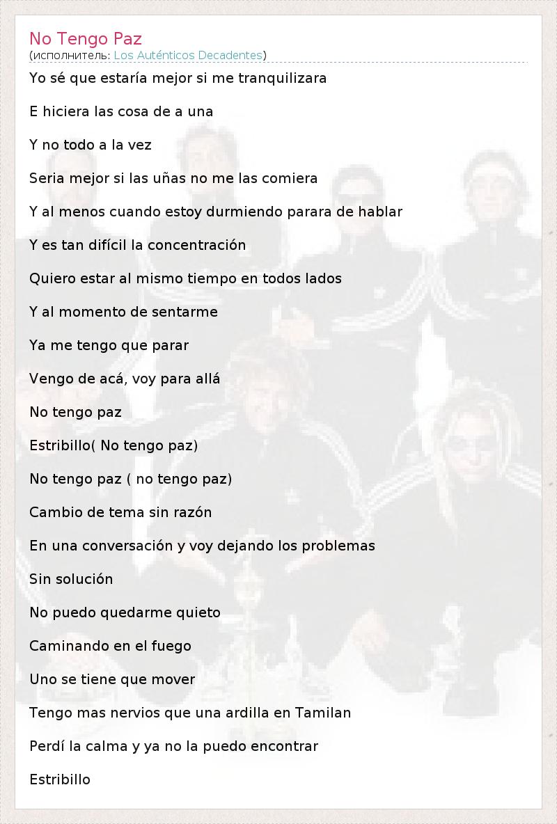 А как ты думаешь, о чем песня "No Tengo Paz" ?