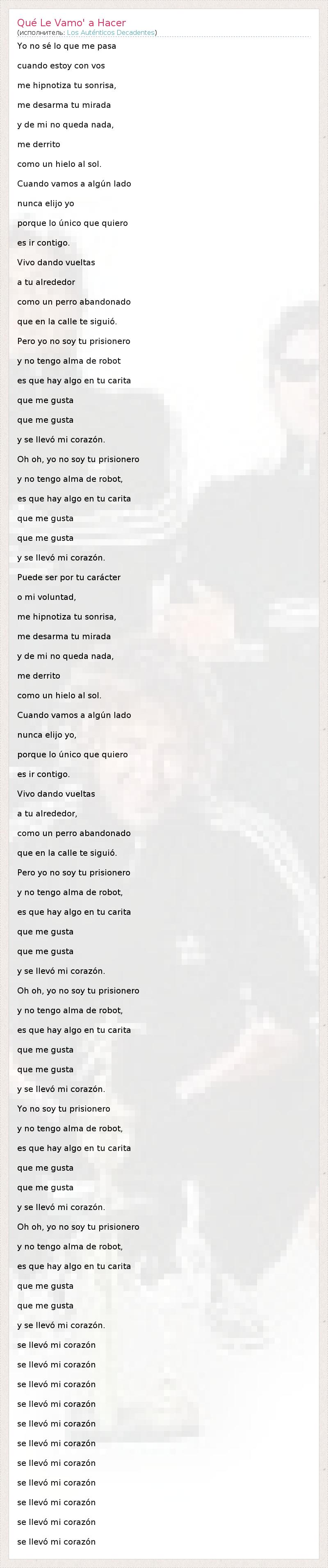 А как ты думаешь, о чем песня "Qué Le Vamo' a Hacer" ?