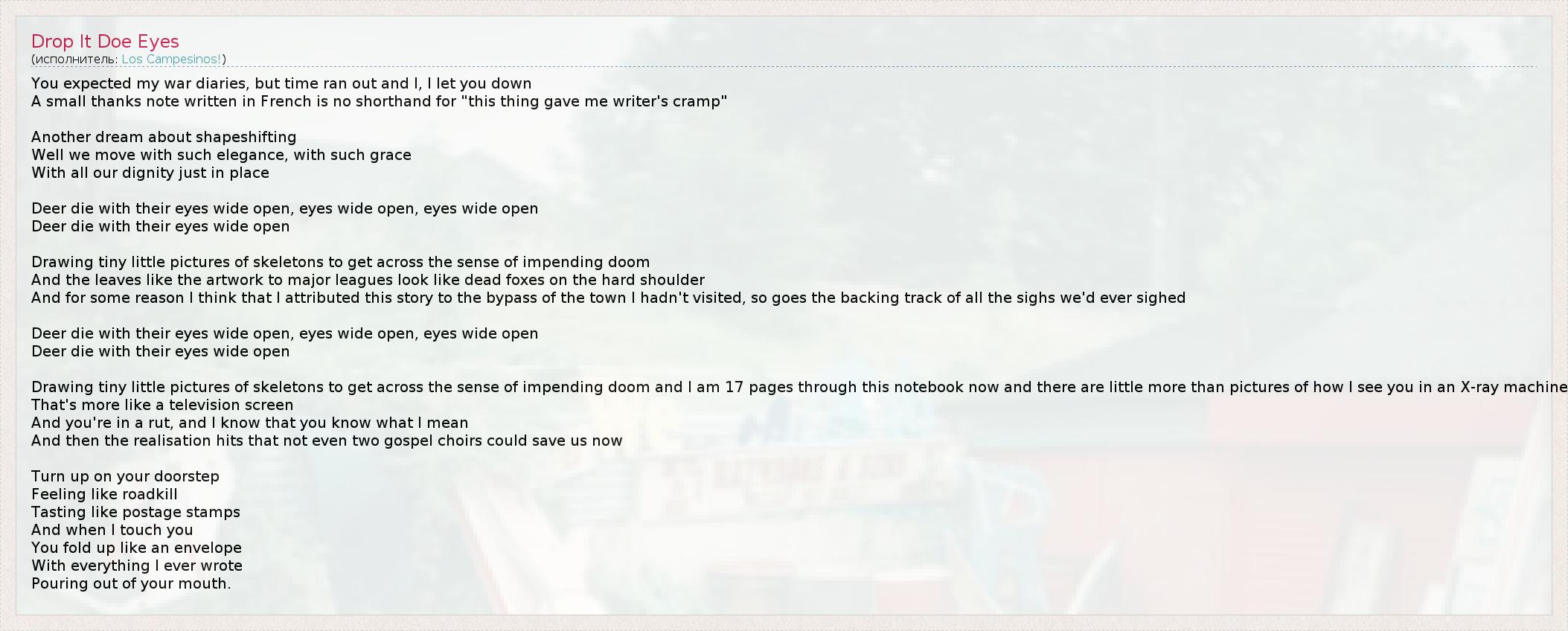 А как ты думаешь, о чем песня "Drop It Doe Eyes" ?