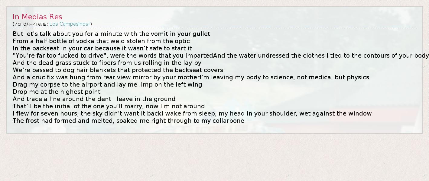 А как ты думаешь, о чем песня "In Medias Res" ?