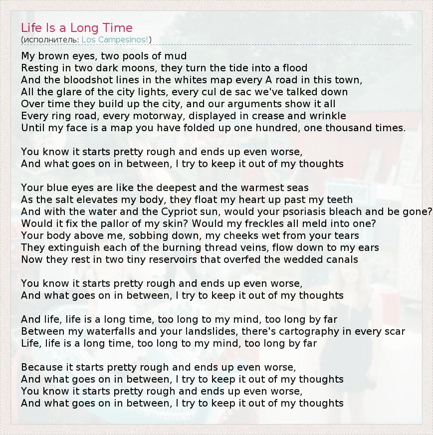 А как ты думаешь, о чем песня "Life Is a Long Time" ?