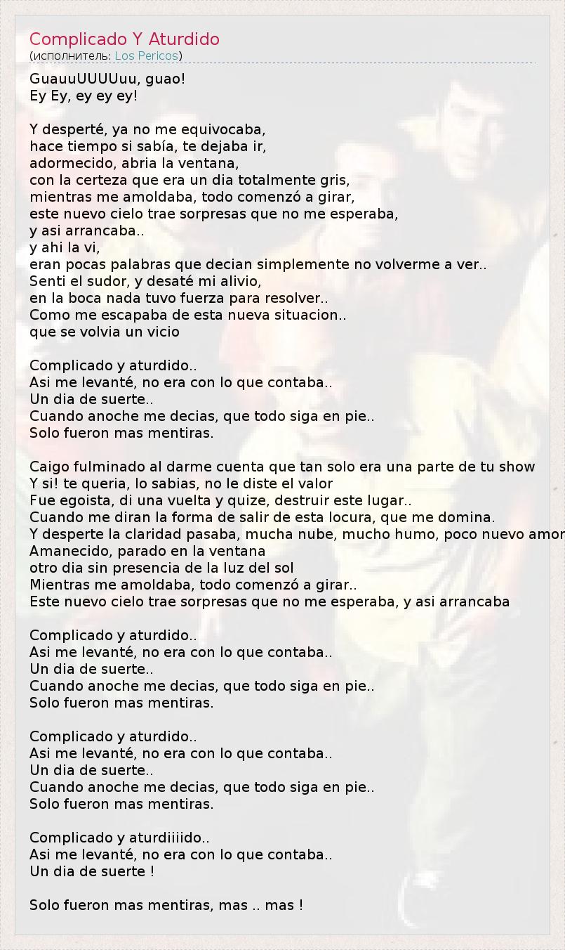 А как ты думаешь, о чем песня "Complicado Y Aturdido" ?