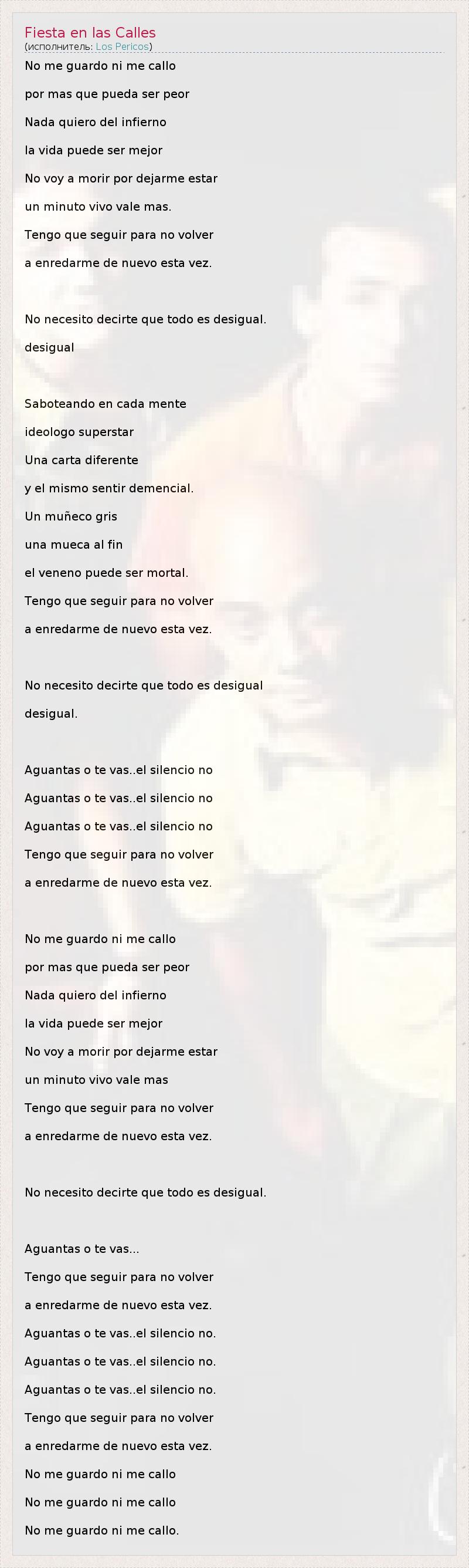 А как ты думаешь, о чем песня "Fiesta en las Calles" ?