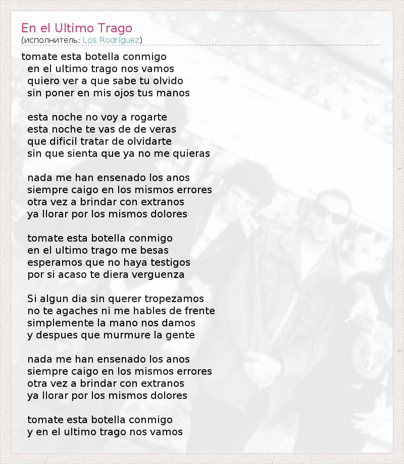 А как ты думаешь, о чем песня "En el Ultimo Trago" ?