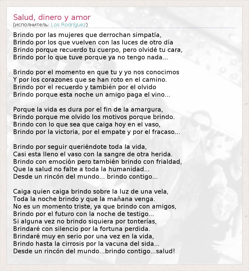 А как ты думаешь, о чем песня "Salud, dinero y amor" ?