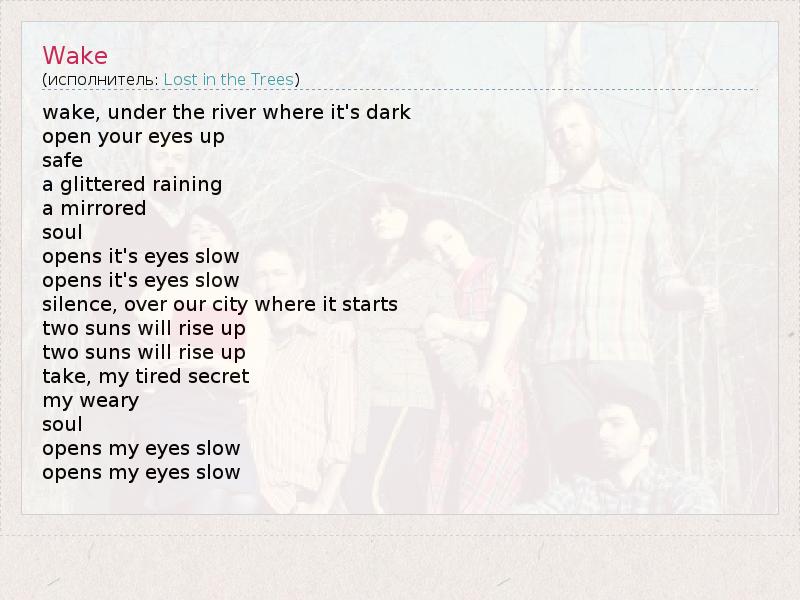 wake, under the river where it's dark open your eyes up safe a glittered raining a mirrored soul opens it's eyes slow opens it's eyes slow silence, over our city where it starts two suns will rise up two suns will rise up take, my tired secret my weary soul opens my eyes slow opens my eyes slow
