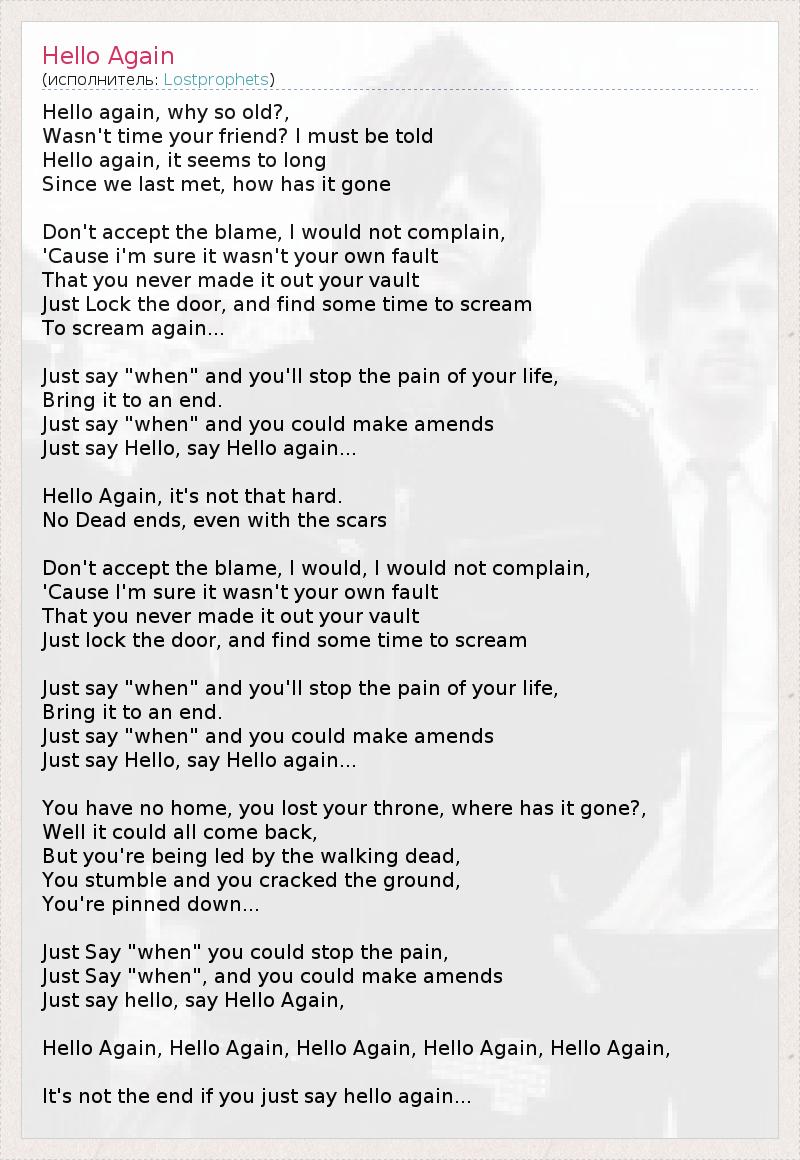 Hello Again, Hello Again, Hello Again, Hello Again, Hello Again,