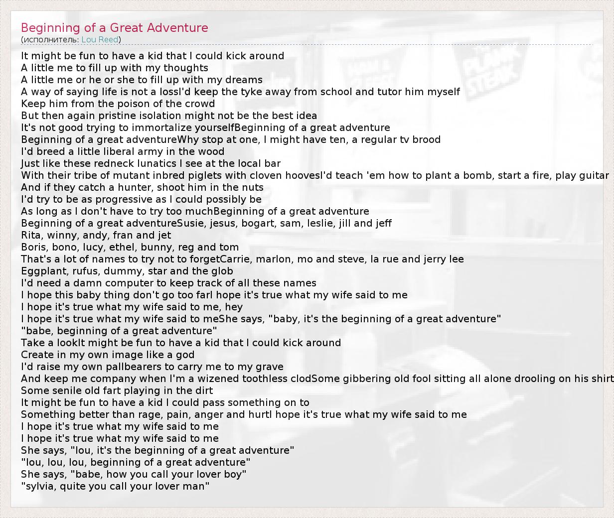 ГлавнаяИсполнителиLou ReedBeginning of a Great Adventure