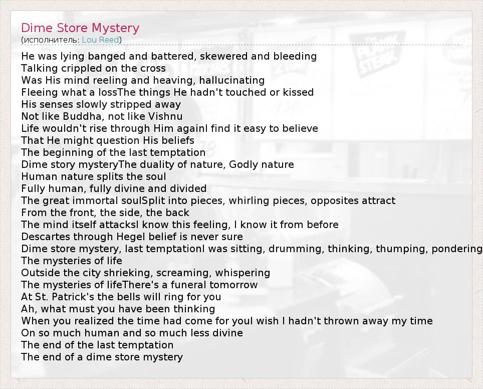 А как ты думаешь, о чем песня "Dime Store Mystery" ?