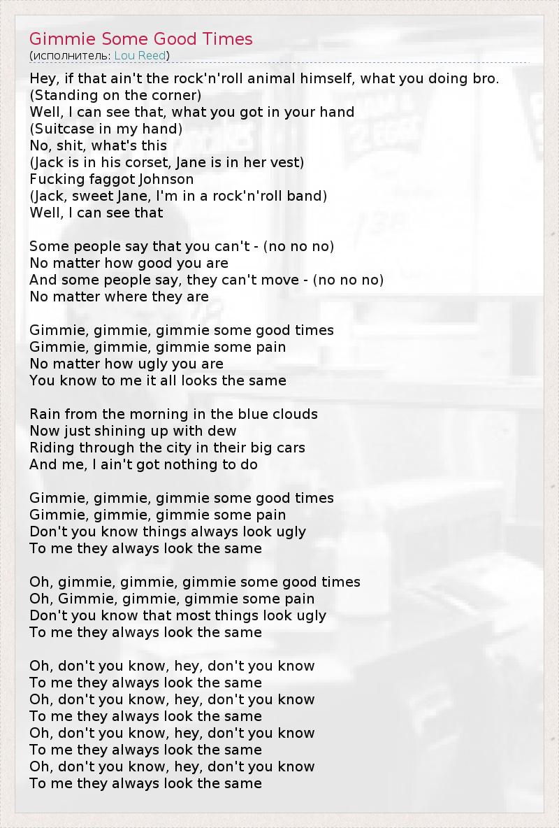 ГлавнаяИсполнителиLou ReedGimmie Some Good Times