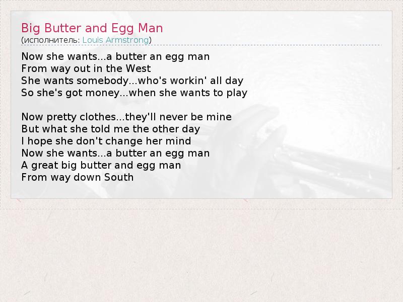 А как ты думаешь, о чем песня "Big Butter and Egg Man" ?