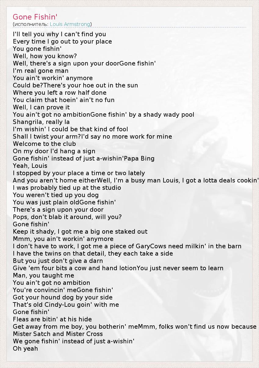 А как ты думаешь, о чем песня "Gone Fishin'" ?