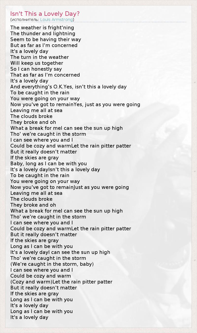 А как ты думаешь, о чем песня "Isn't This a Lovely Day?" ?