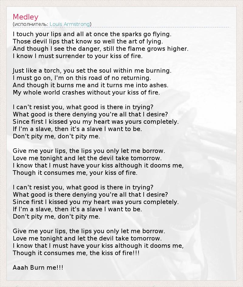 Знаю, я должен я должен отдаться твоему огненному поцелую.