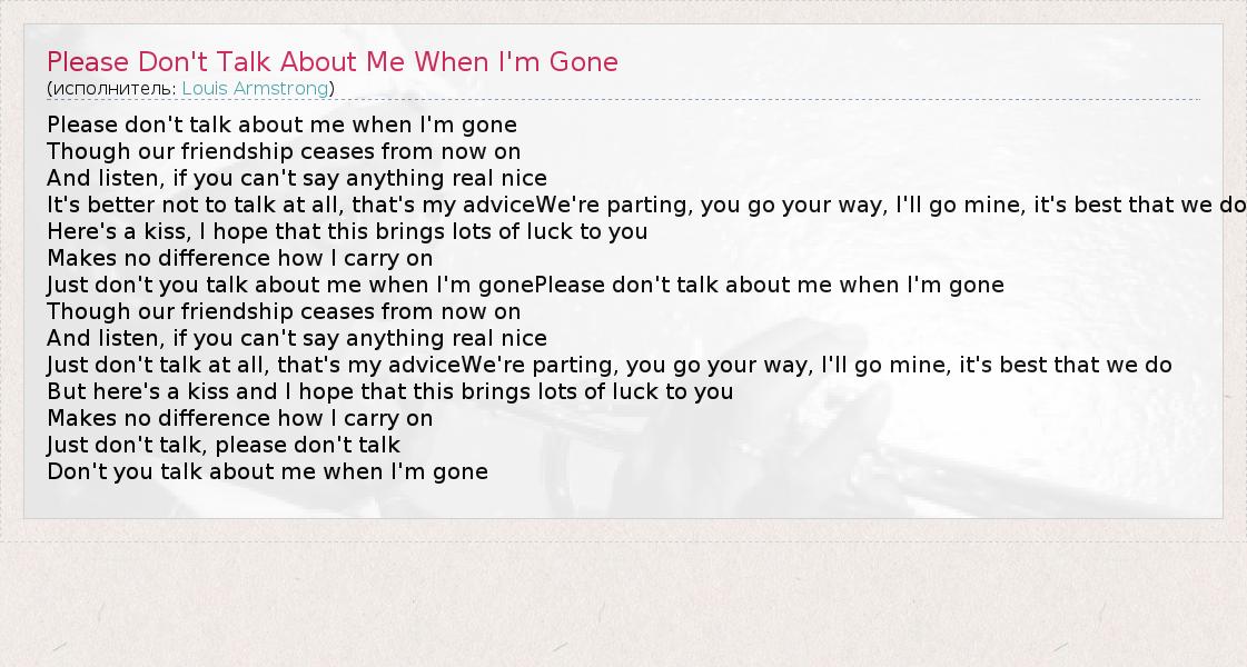 ГлавнаяИсполнителиLouis ArmstrongPlease Don't Talk About Me When I'm Gone