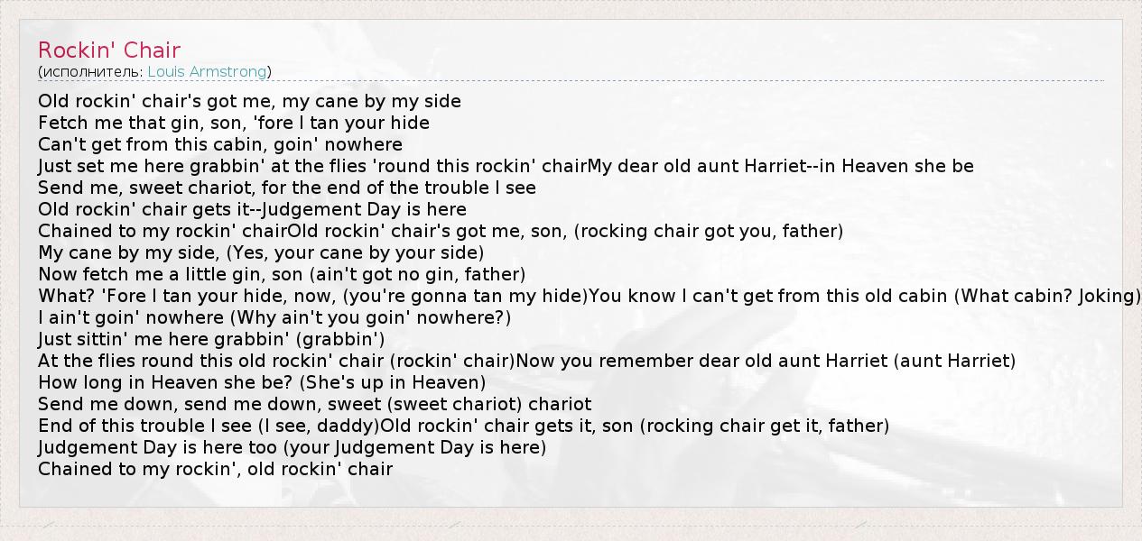 А как ты думаешь, о чем песня "Rockin' Chair" ?