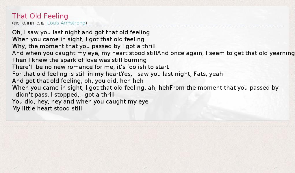 А как ты думаешь, о чем песня "That Old Feeling" ?