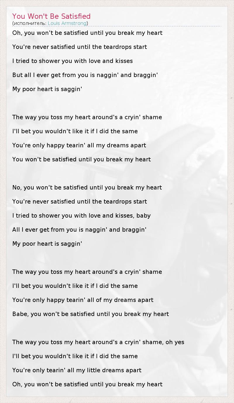 You Won't Be Satisfied