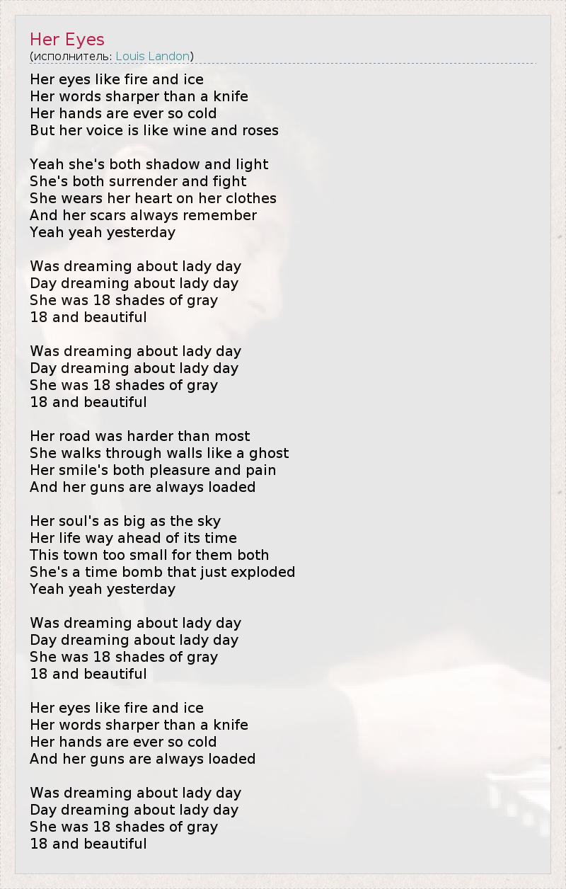 А как ты думаешь, о чем песня "Her Eyes" ?