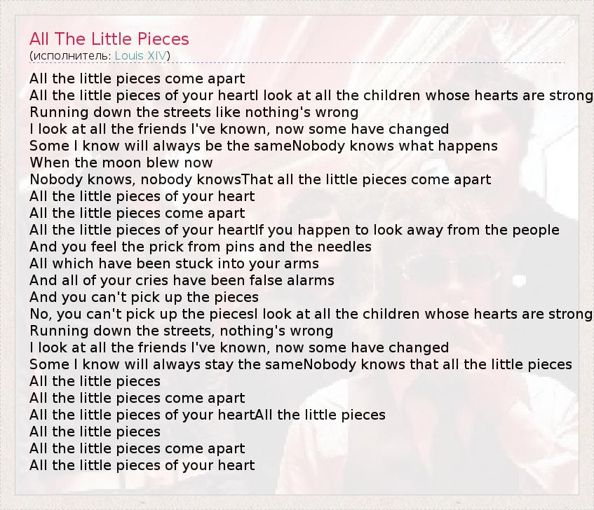 А как ты думаешь, о чем песня "All The Little Pieces" ?