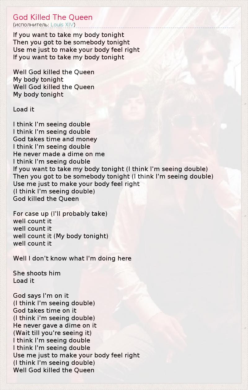 А как ты думаешь, о чем песня "God Killed The Queen" ?