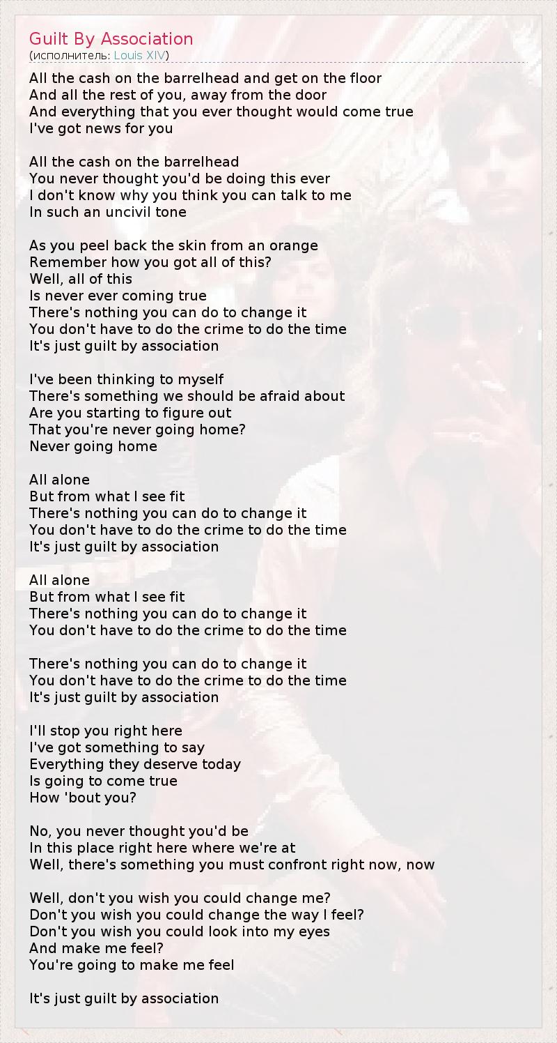 А как ты думаешь, о чем песня "Guilt By Association" ?