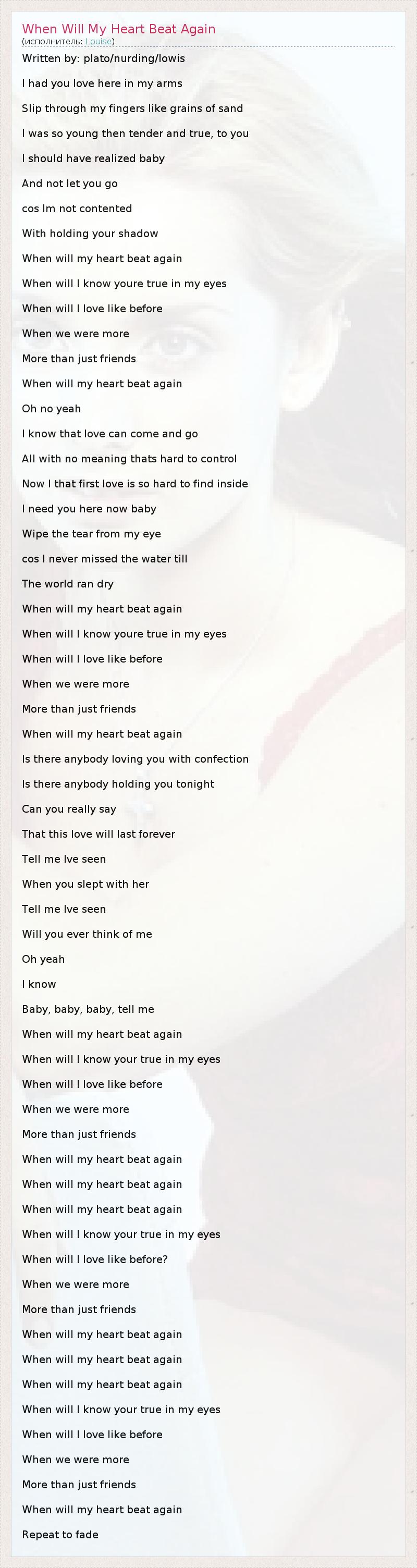 ГлавнаяИсполнителиLouiseWhen Will My Heart Beat Again
