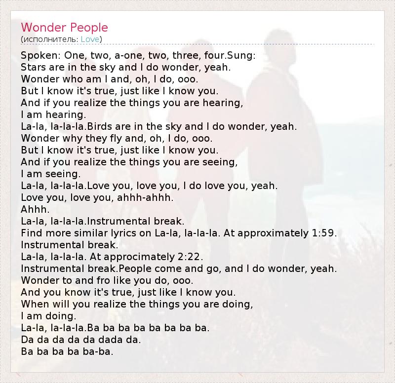 А как ты думаешь, о чем песня "Wonder People" ?