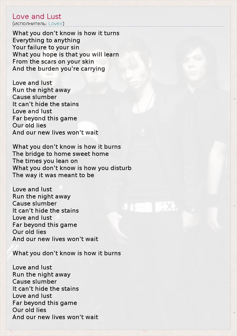 А как ты думаешь, о чем песня "Love and Lust" ?