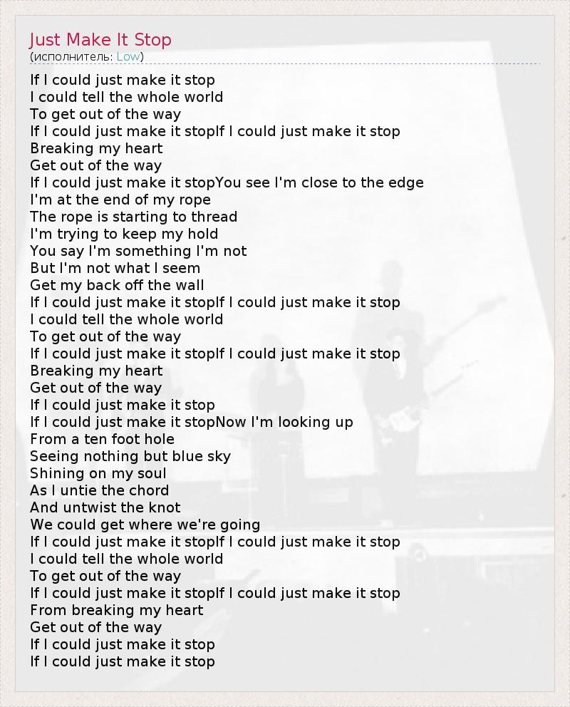 А как ты думаешь, о чем песня "Just Make It Stop" ?