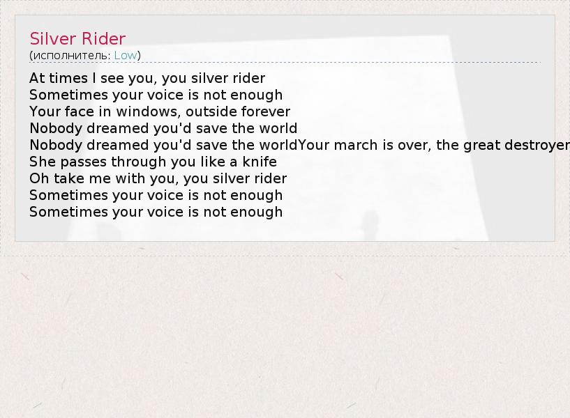А как ты думаешь, о чем песня "Silver Rider" ?