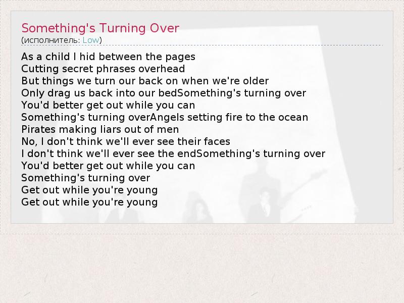 ГлавнаяИсполнителиLowSomething's Turning Over