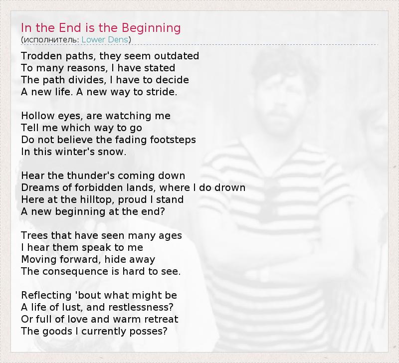 А как ты думаешь, о чем песня "In the End is the Beginning" ?