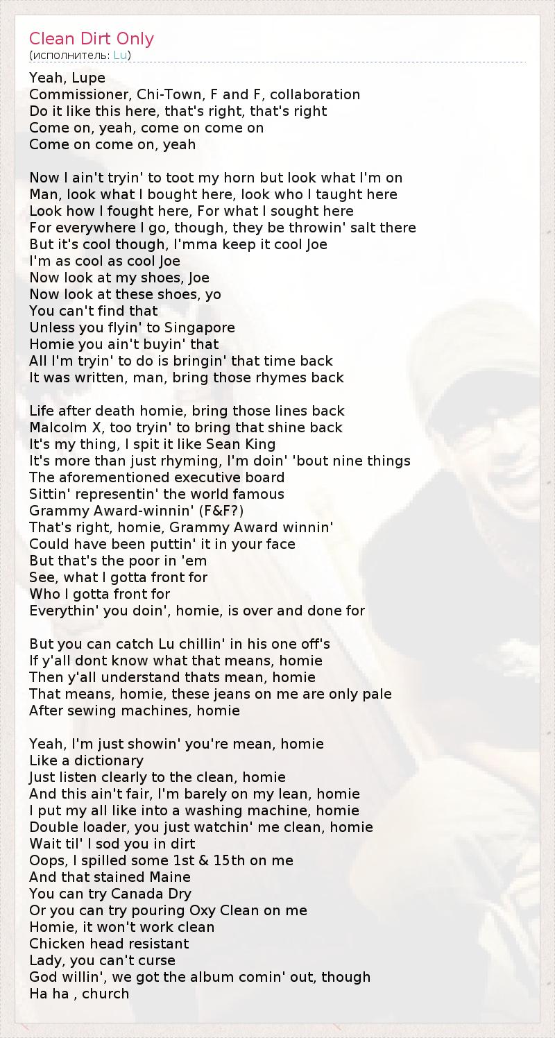 А как ты думаешь, о чем песня "Clean Dirt Only" ?