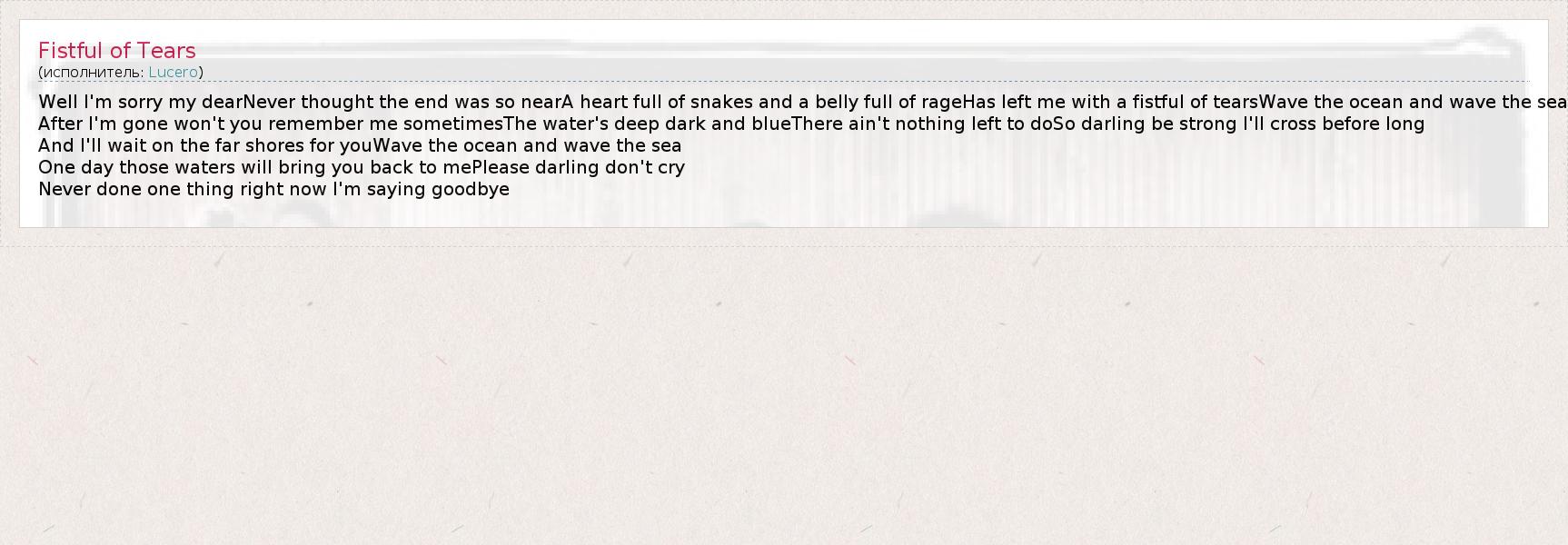 А как ты думаешь, о чем песня "Fistful of Tears" ?