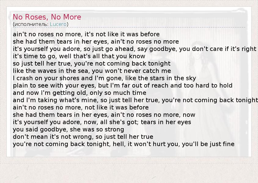 А как ты думаешь, о чем песня "No Roses, No More" ?