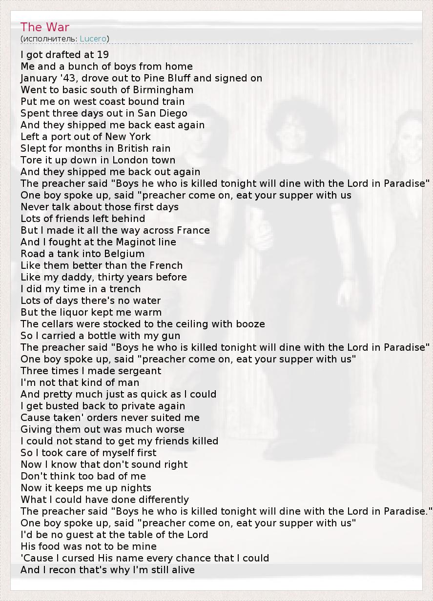 А как ты думаешь, о чем песня "The War" ?
