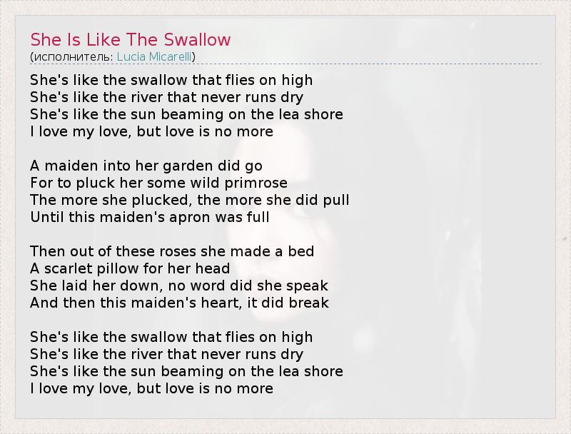 А как ты думаешь, о чем песня "She Is Like The Swallow" ?