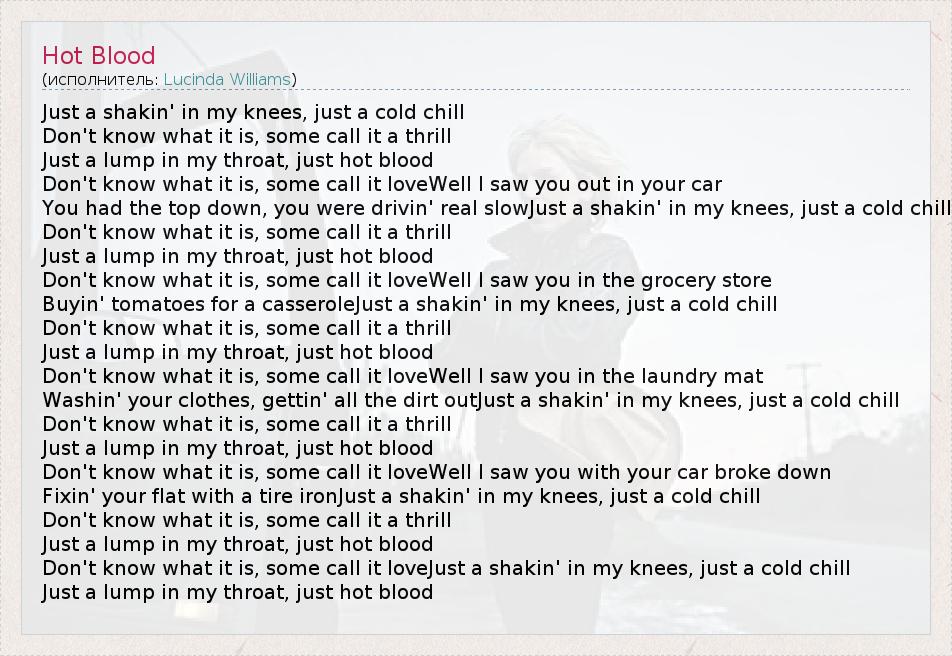 А как ты думаешь, о чем песня "Hot Blood" ?