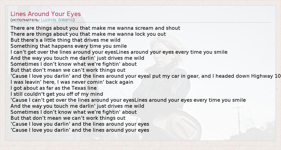 А как ты думаешь, о чем песня "Lines Around Your Eyes" ?