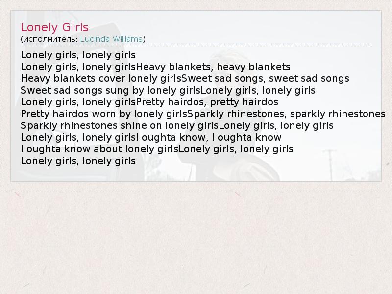 А как ты думаешь, о чем песня "Lonely Girls" ?