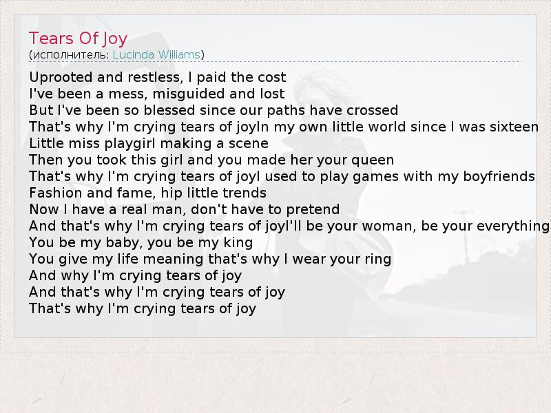 А как ты думаешь, о чем песня "Tears Of Joy" ?