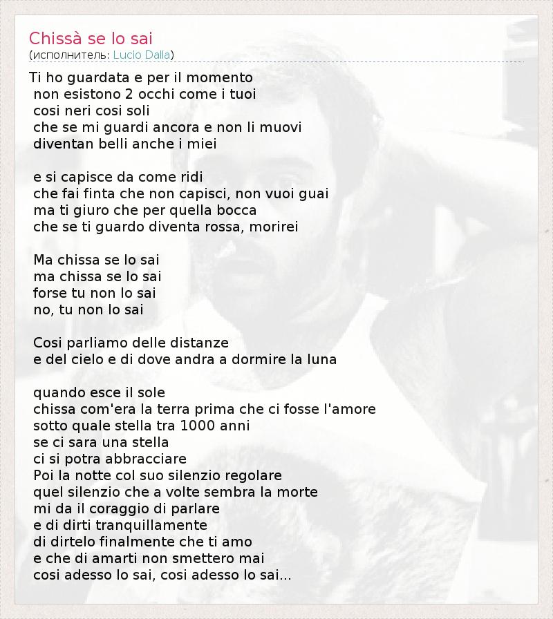 А как ты думаешь, о чем песня "Chissà se lo sai" ?