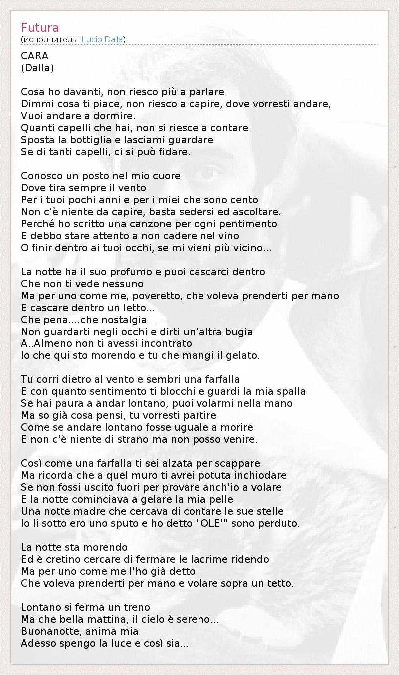 Это интересно:Лучо Далла родился 4 марта 1943 года. Кроме даты рождения Даллы эти цифры стали названием одного из его дисков, ставших классикой, более известного широкой публике под названием "Gesu' Bambino" («Младенец Иисус»). Фоном его творческого дебюта стала послевоенная Болонья, уже созревшая для того, чтобы увлечь Италию в эпоху индустриального подъема. Лучо - паренек из разряда неудачников, беспокойный,... продолжение
