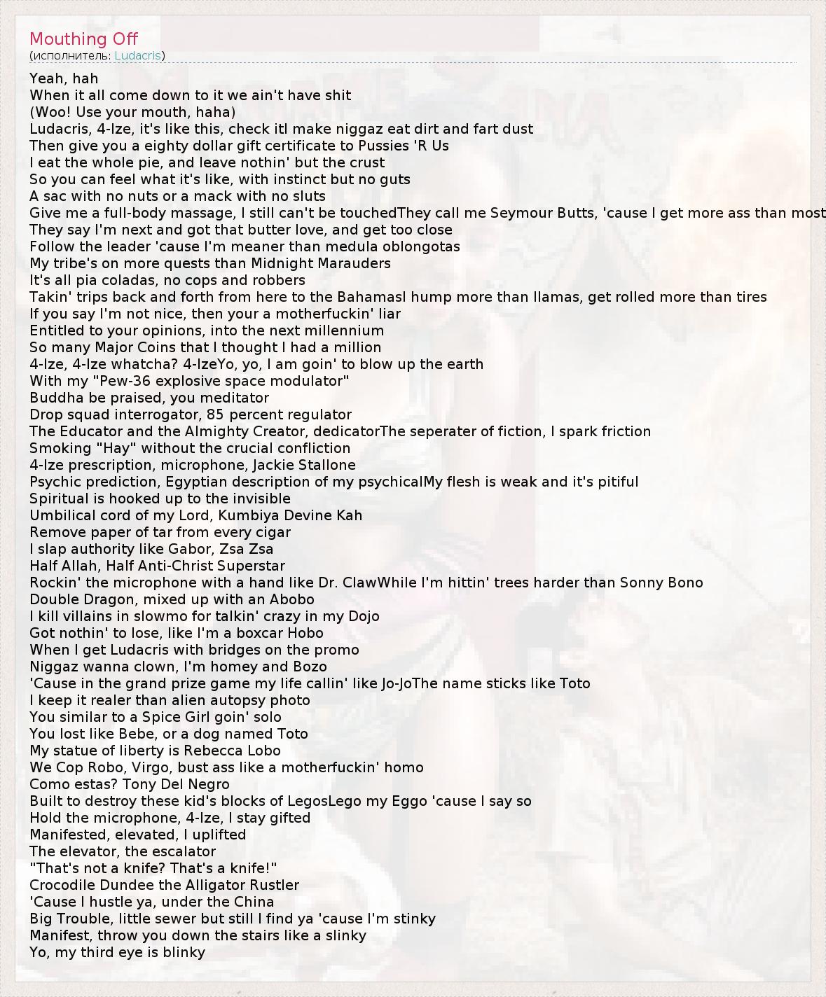 А как ты думаешь, о чем песня "Mouthing Off" ?