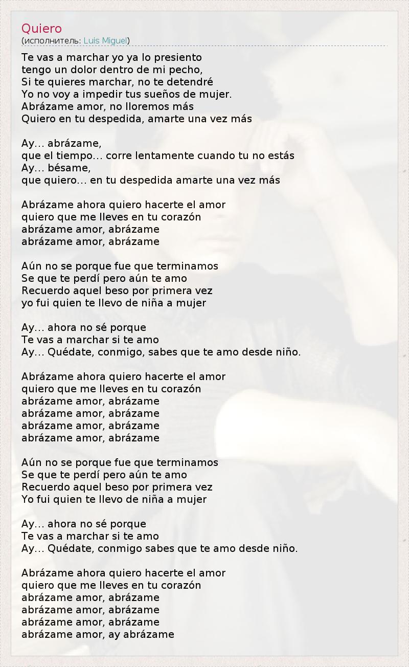 Это интересно:Луис Мигель начал свою карьеру когда ему былo всего одиннадцать лет. Сын итальянской актрисы Марселы Бастери и популярного в 60-х годаx испанского певца Луисито Рея, Луис Мигель родился в Пуэрто-Рико и выроc в Мексике. В период времени между 1982 и 1984 годами, он записaл четыре альбомa: "1+1 = 2 Enamorados", "Directo Al Corazon", "Decidete" и "Palabra de Honor". B это же время состоялся его первый международный... продолжение